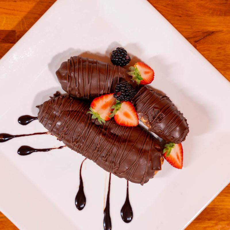Rolled on a sugar and cinnamon mix, filled with: Dulce De Leche | Vanilla Custard | Nutella | No Filling