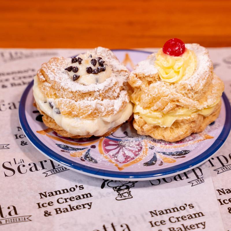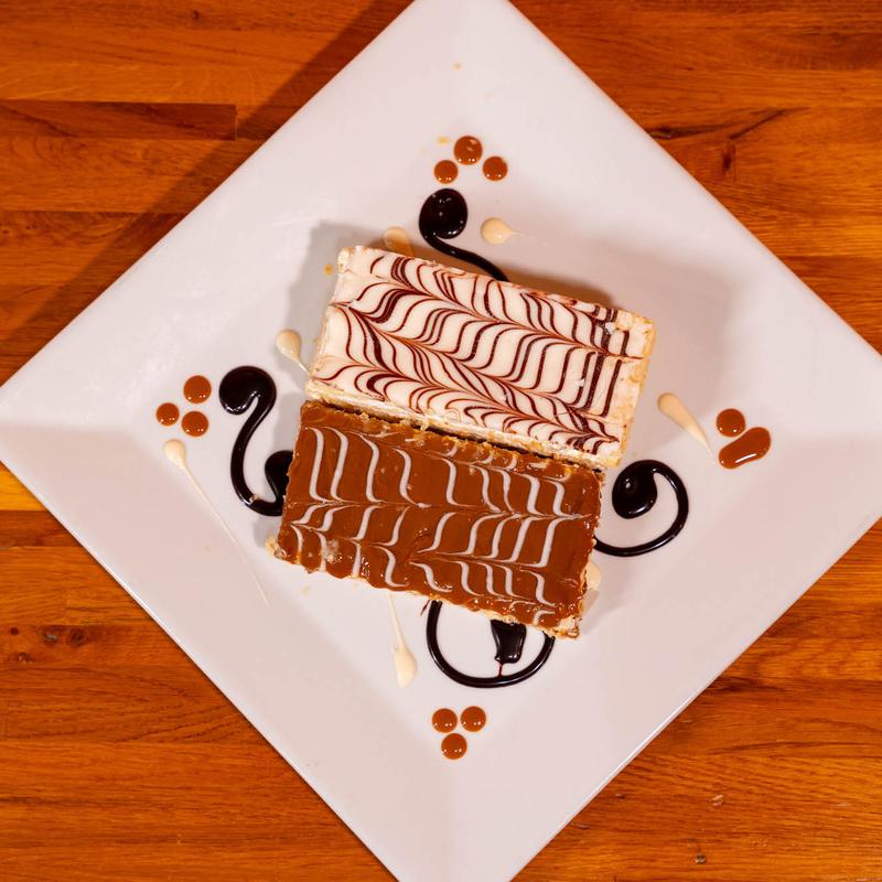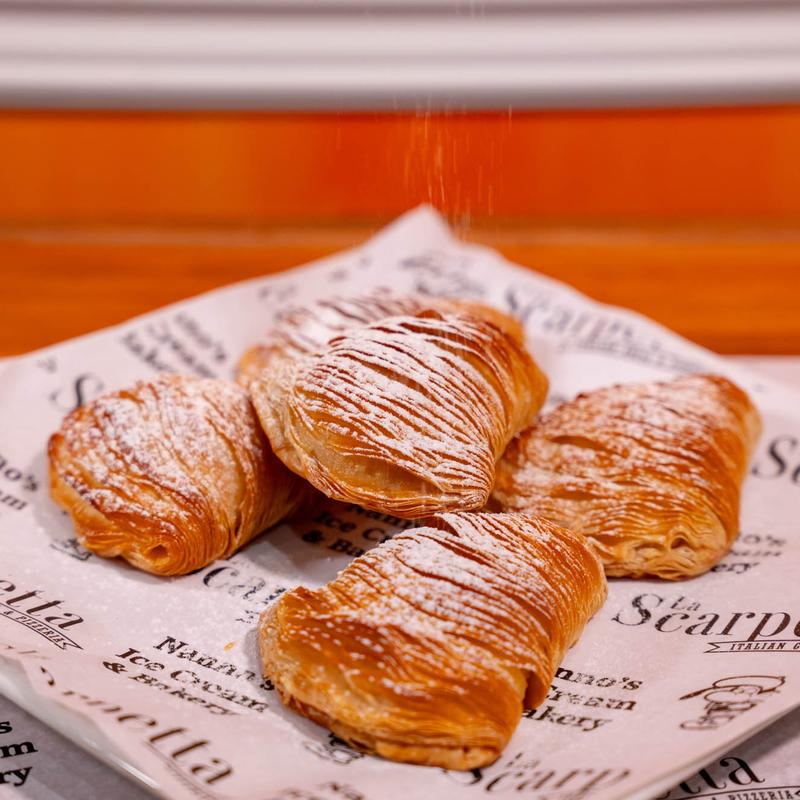 Multiple layers of flakey dough with an Italian cream filling, topped with white chocolate.