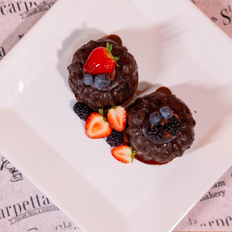 One layer of chocolate cake with two layers of our fudge brownies filled with a peanut butter mousse.